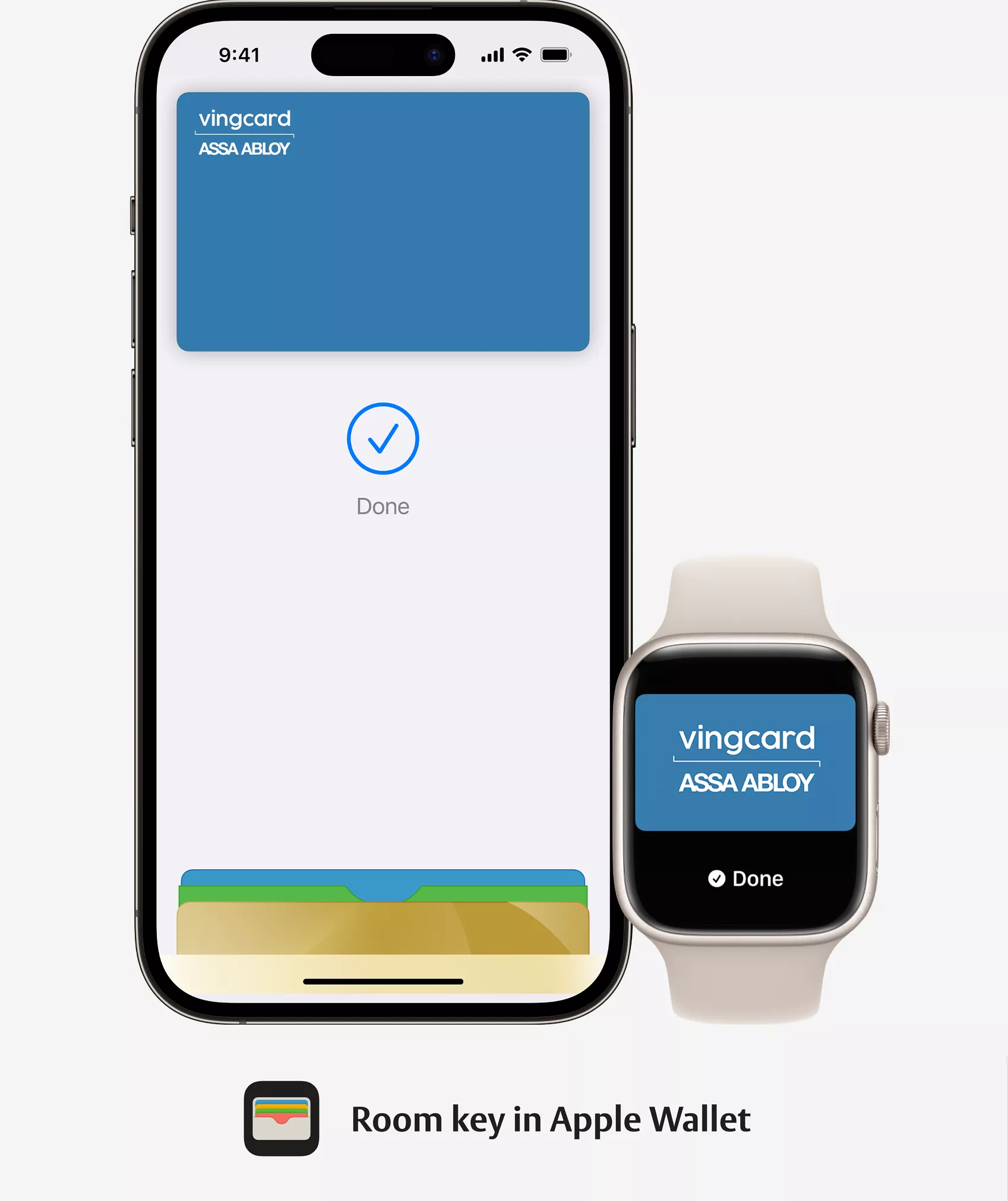S kľúčom od izby v Apple Peňaženke majú hostia prístup do svojich izieb, výťahov a spoločných priestorov, ako je posilňovňa či bazén, jednoducho pomocou svojho iPhonu alebo Apple Watch. Je to jednoduché, pohodlné a súkromné. Kľúč od izby v Apple Peňaženke sa integruje do existujúcich systémov kontroly prístupu, ľahko sa distribuuje a spravuje a využíva vstavané bezpečnostné funkcie iPhonu a Apple Watch.